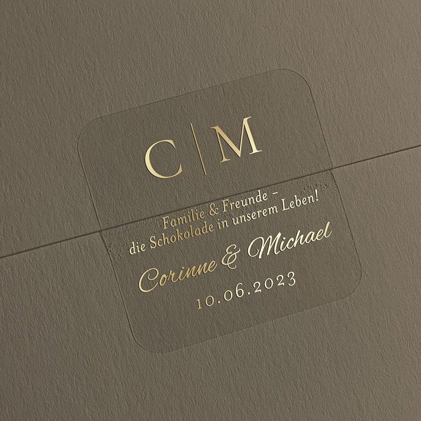 Mit Ihrem Namen, Datum oder Wunschtext gestaltet, werden die Aufkleber zu einem stilvollen Highlight Ihrer Papeterie.