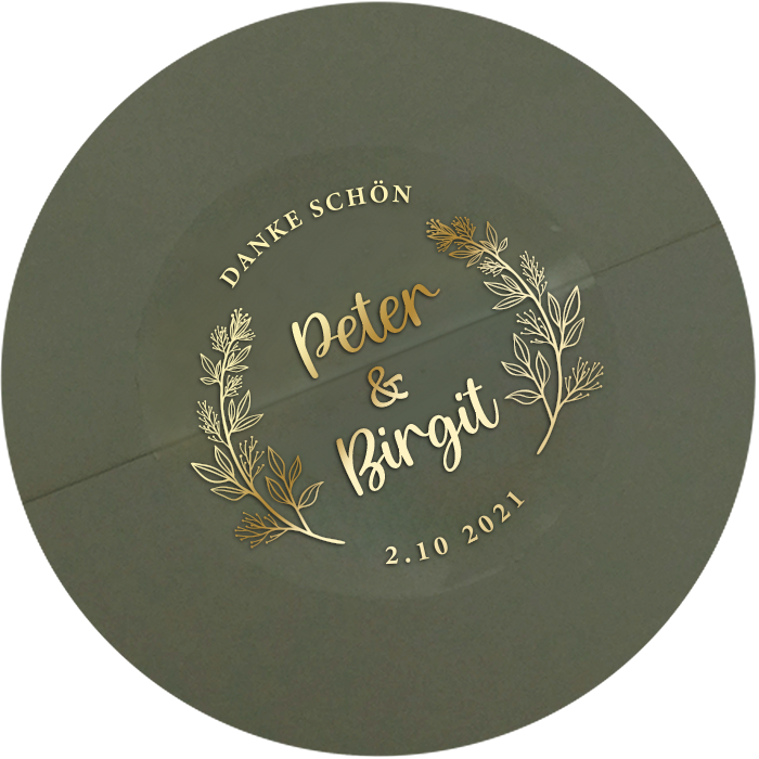 Wir verwenden echte metallische Folie, die Ihren Aufklebern einen edlen und hochwertigen Look verleiht – ein Hauch von Eleganz für jeden Anlass!