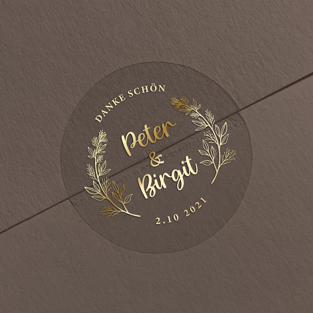 Mit Ihrem Namen, Datum oder Wunschtext gestaltet, werden die Aufkleber zu einem stilvollen Highlight Ihrer Papeterie.
