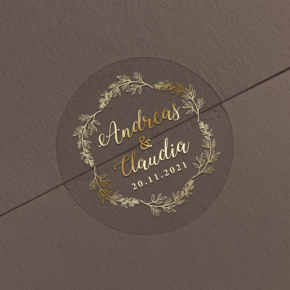 Mit Ihrem Namen, Datum oder Wunschtext gestaltet, werden die Aufkleber zu einem stilvollen Highlight Ihrer Papeterie.