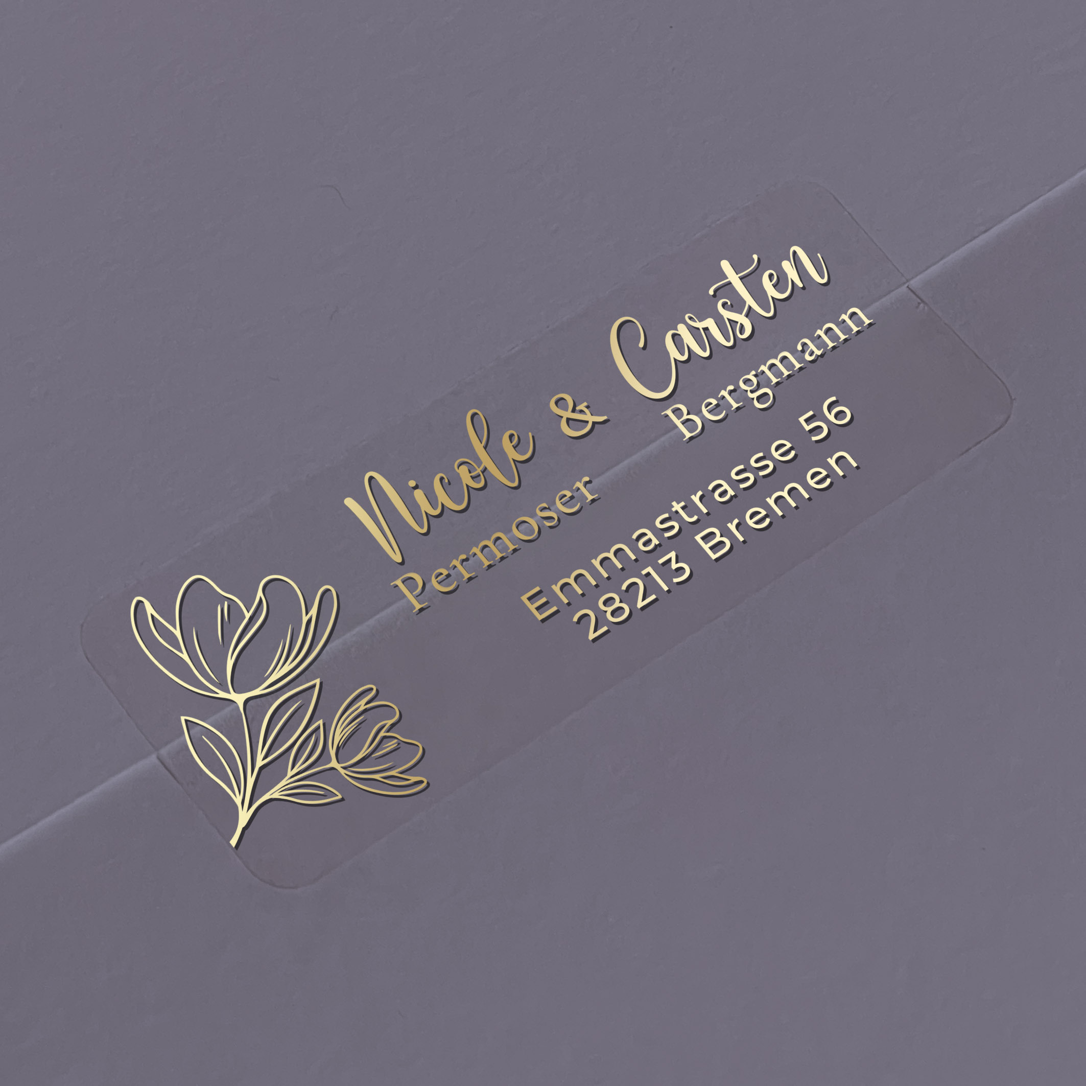 Verleihen Sie Ihrer Post einen Hauch von Luxus mit unseren personalisierten Adressetiketten in Goldfolie. Die hochwertigen Foliensticker sind ideal für Hochzeiten, Einladungen, Danksagungen, geschäftliche Postsendungen, Weihnachten oder persönliche Korrespondenz.